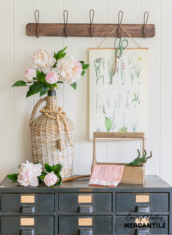 These wooden caddies have so many uses. You can gather your veggies or flowers with them; corral your mail; add small planters inside with herbs or flowers; place towels and bathroom supplies; use them for napkins and utensils when dining on the porch; and the list goes on.